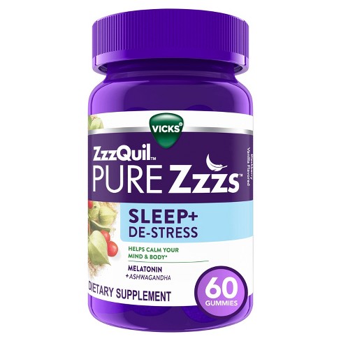 Best for Pain Relief. ZzzQuil PURE Zzzs De-Stress Sleep Melatonin Sleep Aid with Ashwagandha Chamomile Lavender Valerian Root Drug Free 60 Gummies ZzzQuil Pure Zzzs Melatonin Sleep Aid Liquid with Chamomile Lavender Valerian Root Lemon Balm Non-Habit Forming Drug-Free Wildberry Vanilla 8. A Sleep Supplement You Can Feel Good About.